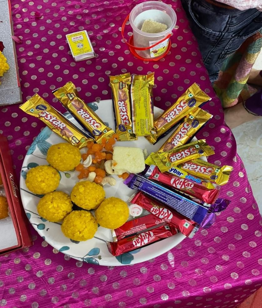 • Shared sweets (modaks and laddoos) symbolizing happiness and blessings.
