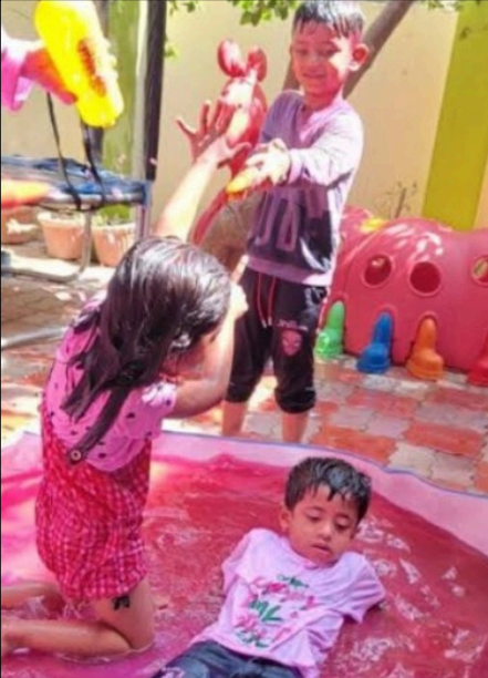• Dancing to Festive Songs – Children groove to joyful Holi melodies.
