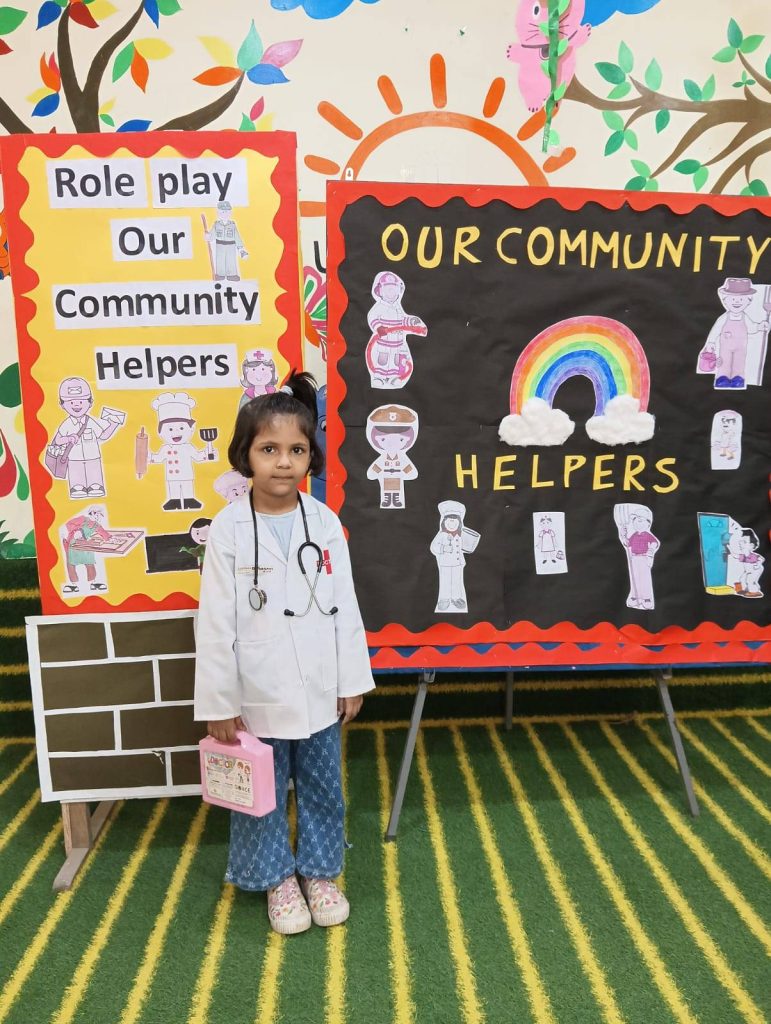 Children often see teachers, nurses, police officers, and milkmen around them, but may not fully understand their roles. Our Helpers Week is celebrated to bridge this gap—helping little learners recognize the contributions of community helpers and appreciate the essential services they provide. It’s a way to teach gratitude early and build awareness of how society works together.