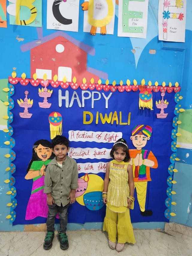 Udayan Kidz lit up with joy as children celebrated Diwali through stories, songs, and sparkling smiles. The day began with vibrant rangoli designs and diya painting, followed by mythological skits that brought the Ramayana to life.